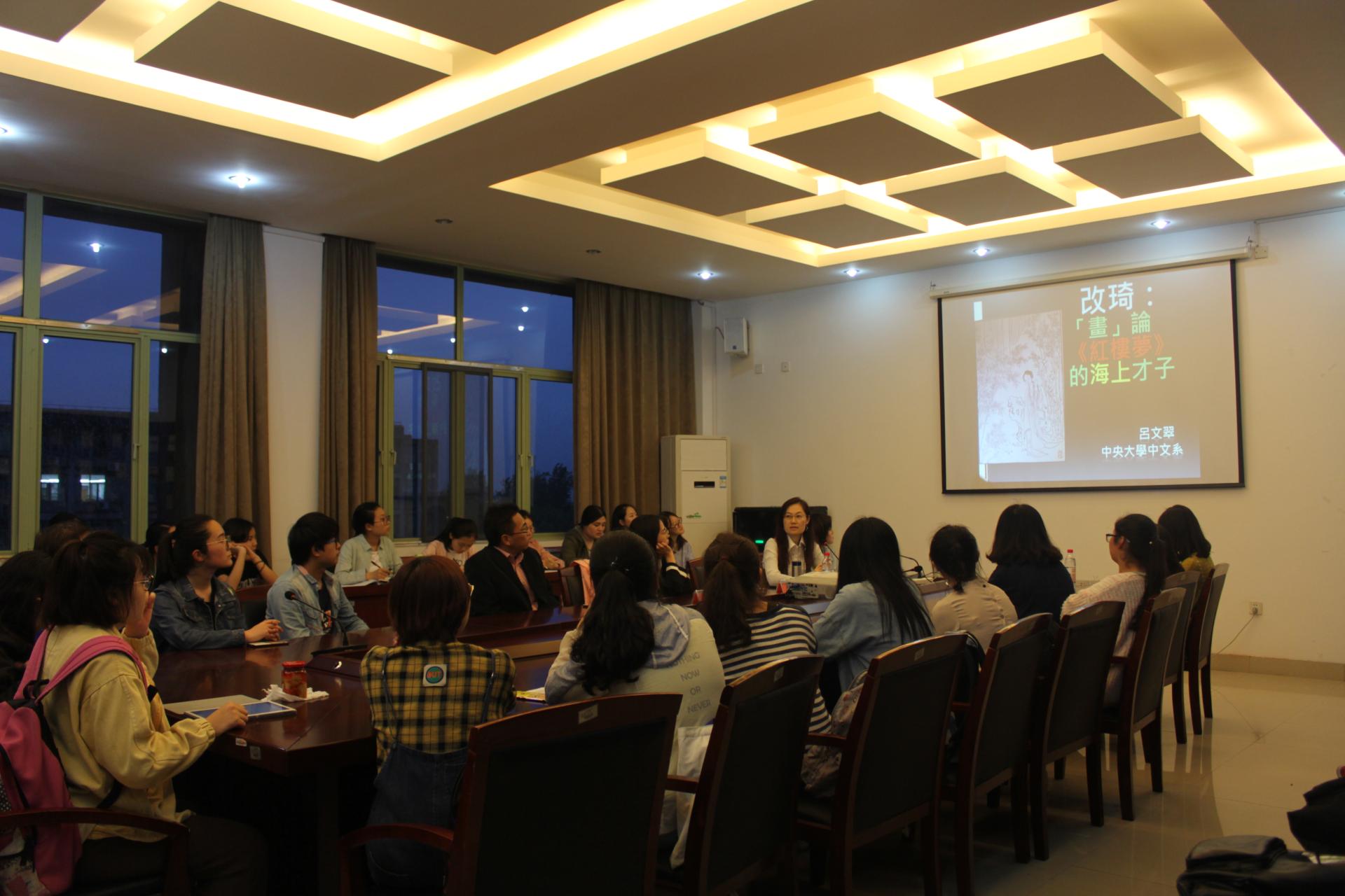 2018年4月23日晚上,台湾“中央大学”吕文翠教授应邀来猫都论坛 做了题为《“画”论<红楼梦>的海上才子》的学术讲座,讲座由周保欣教授主持,猫都论坛 众多师生聆听了此次讲座。吕文翠教授以“改琦何许人也?”入题,首先介绍了改琦的生平及其著作《红楼梦图咏》。然后从《红...