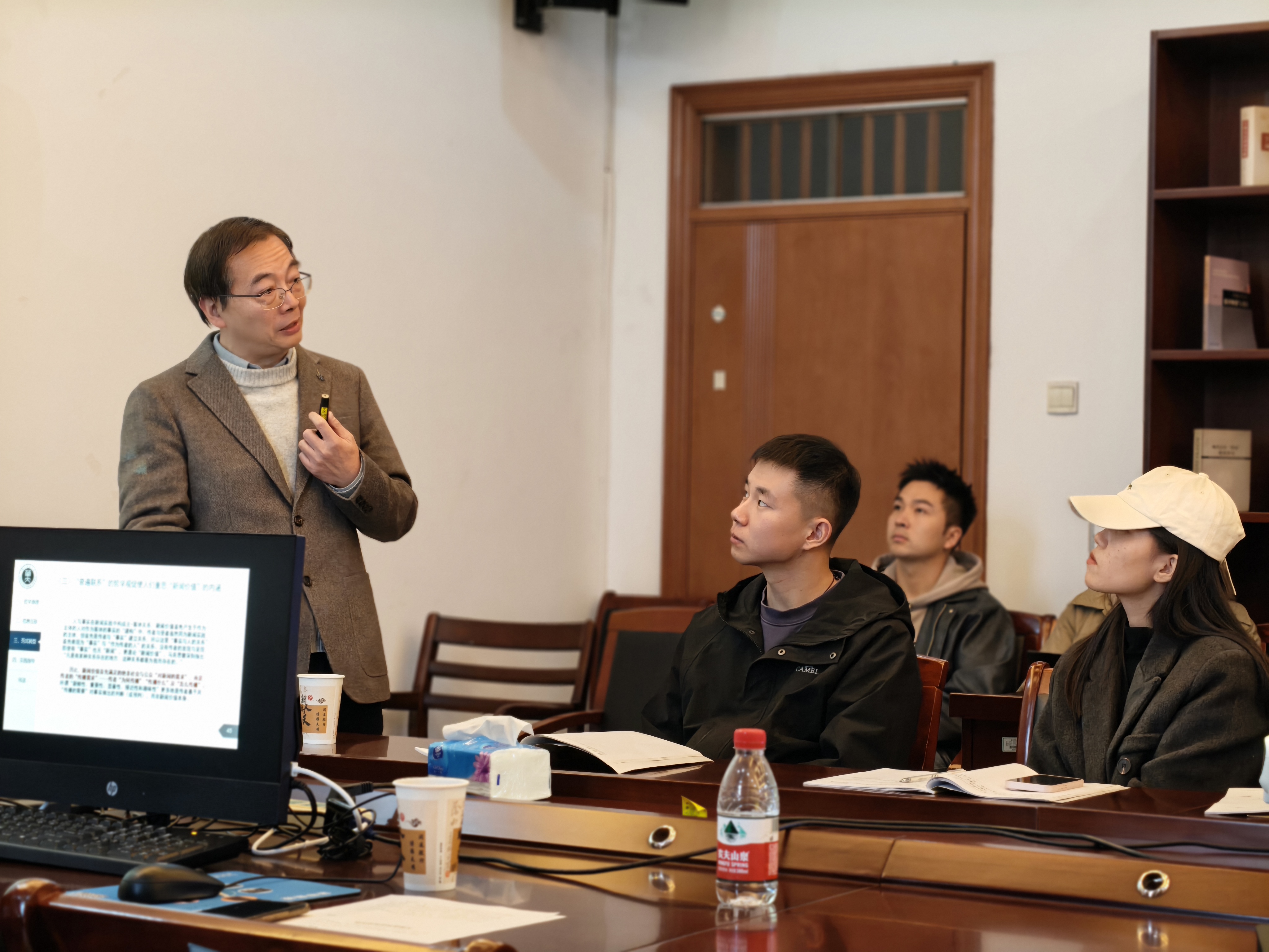 12月6日下午14时,华中师范大学新闻传播学院教授、博士生导师喻发胜应猫都论坛 邀请在7号学院楼404会议室作题为“普遍联系:马克思主义新闻学的重要哲学基石及其实践价值”的学术讲座。猫都论坛 胡文财副教授主持讲座,2023级、2024级新闻与传播专业全体硕士生及学院教师到场聆...