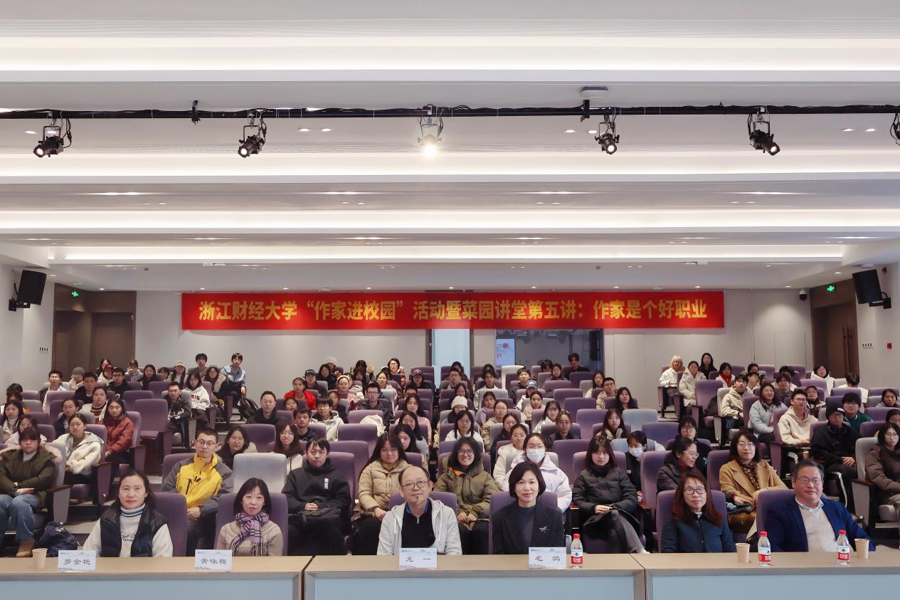 12月8日,“作家进校园”活动暨“菜园讲堂”第五讲在图书馆5楼西报告厅举行。著名作家、中国作家协会全委会委员龙一应邀作“作家是个好职业”专题讲座。党委宣传部、猫都论坛 相关负责人、图书馆、外国语学院等在校师生代表180余人参加活动。(著名作家、中国作...