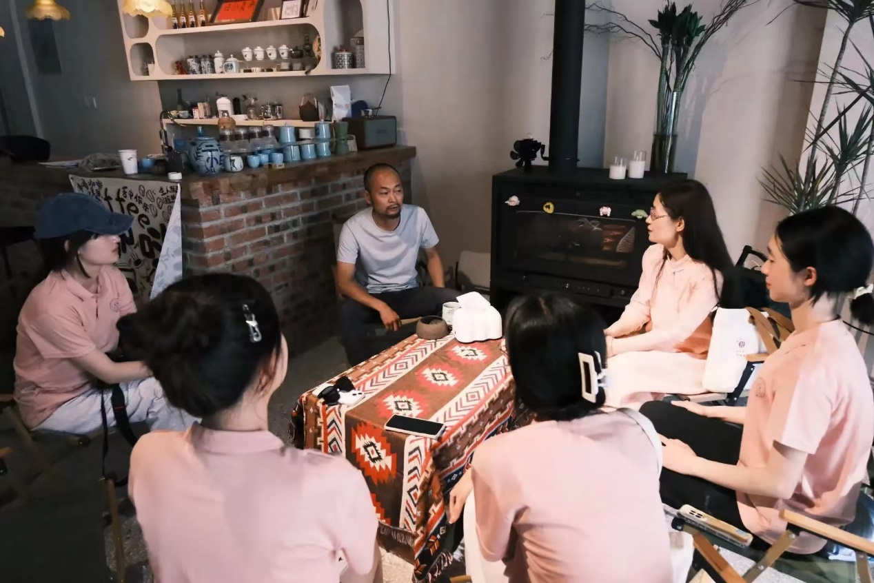 “风韵南孔:儒家文化润衢城,美丽乡村焕新颜”团队与陶瓷匠人汪家良交谈