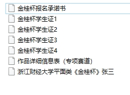 注:报名表和承诺书都需要电子签名,最后必须以zip或rar压缩包整理所有文件,文件命名为参赛编号,可参看下列图示举例: