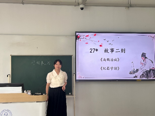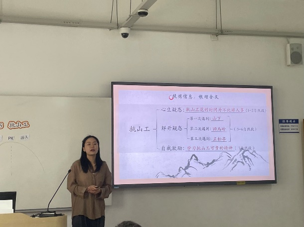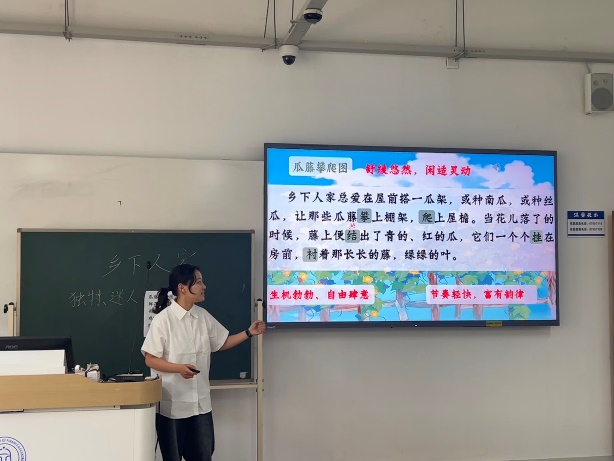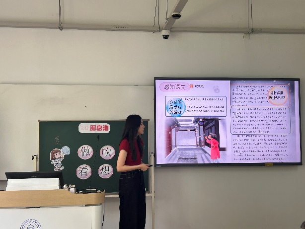 决赛选手提前从中小学的语文教材中选择比赛篇目并撰写教案。决赛开始,选手根据教学设计方案,围绕所选教学主题进行10-15分钟的模拟课堂教学展示。选手们在教学演示中各展所长,深研课标设计教学目标,环节递进有序。课件新颖、板书精巧,勾勒知识体系;教态大方、语言流畅,互动与任务阐述兼具实效。严谨规范的教学实践,展现了猫都论坛 学生扎实专业功底与教学技能,获得评委的一致认可。