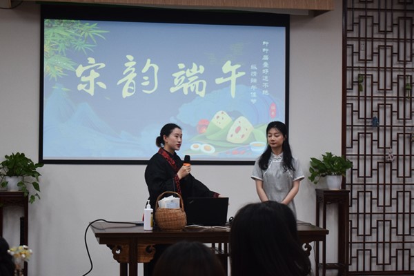 活动伊始,汉语国际教育专业的刘春燕、李恩慧两位同学首先通过海报、PPT、视频等形式,图文并茂、生动有趣地介绍了端午节的历史由来以及各种传统习俗。