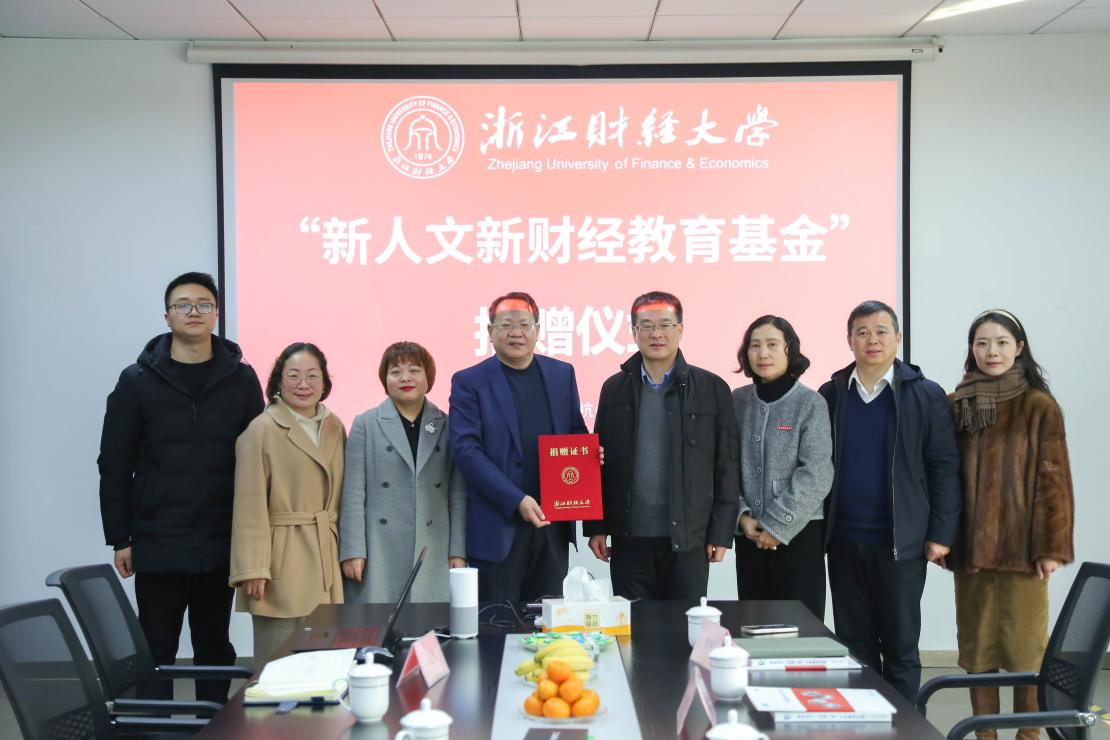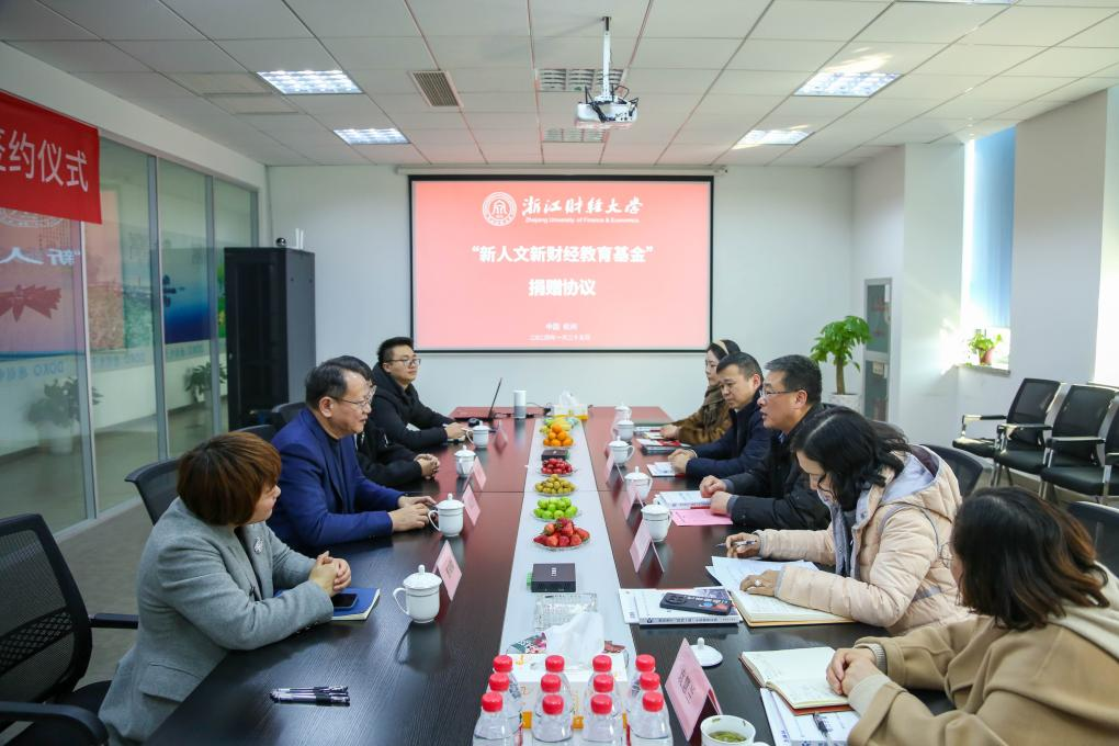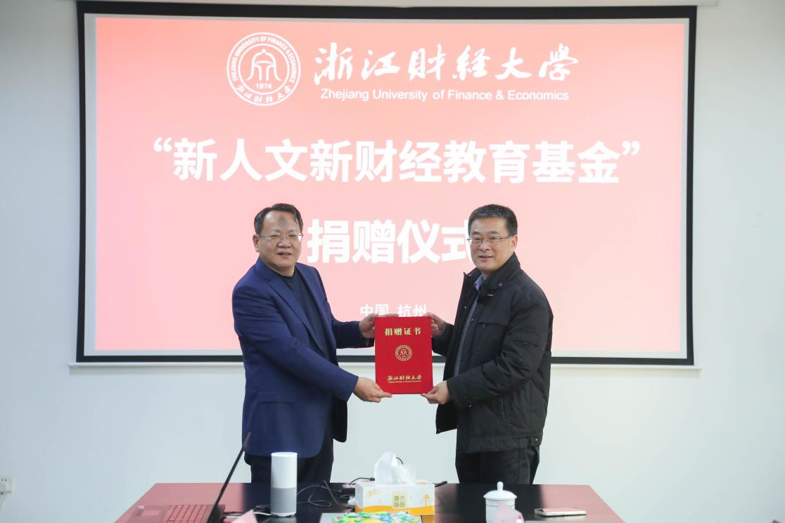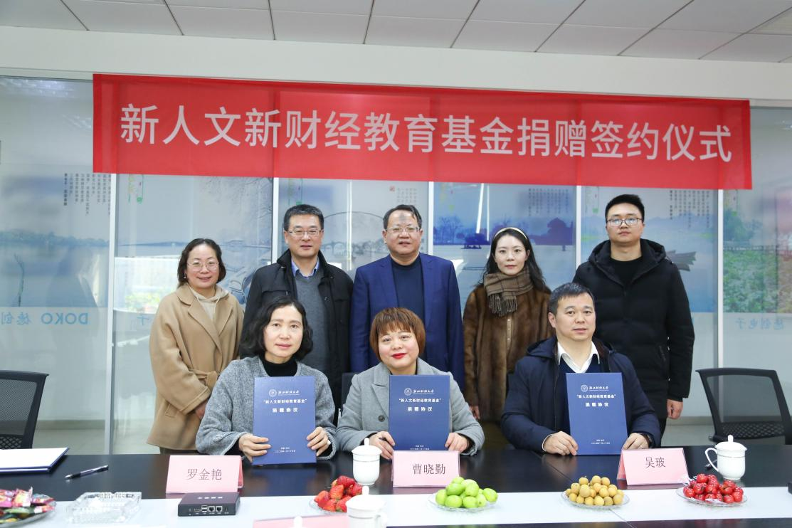 1月25日下午,浙江财经大学“新人文新财经教育基金”捐赠仪式在杭州德创电子股份有限公司举行。杭州德创电子股份有限公司、杭州魔合数字技术有限公司与浙江财经大学共同成立“新人文新财经教育基金”。校党委副书记徐晓东、杭州德创电子股份有限公司董事长李云水出席签约仪式。