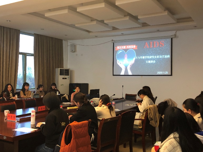 为迎接第33个世界艾滋病日,加强艾滋病知识的宣传教育、增强广大研究生预防艾滋病的意识和能力,传达健康的生活理念,猫都论坛 于11月25日下午在7-404由研究生辅导员刘华婷主持开展以“携手防疫抗艾,共担健康责任”为主题的班会,2019级和2020级全体研究生参加此次班会。