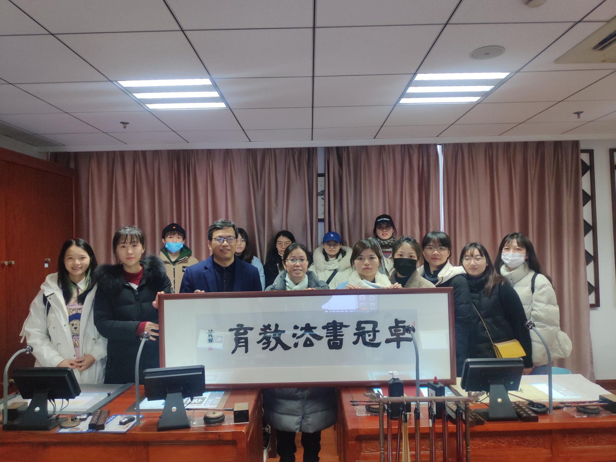 4号下午,同学们又继续前往杭州卓冠教育科技有限公司进行调研活动。卓冠公司致力于书法教育,首次提出“标准化智慧书法”概念,拥有20多项国家专利,将书法与现代科技相融合,形成了极具规模的书法产业。同学们跟随创始人之一参观了具有专利特色的书法桌椅以及他们庞大的书法字体资料库,接着前往萧山区市心小学感受真实的智慧书法课堂,感叹书法与科技的完美结合。