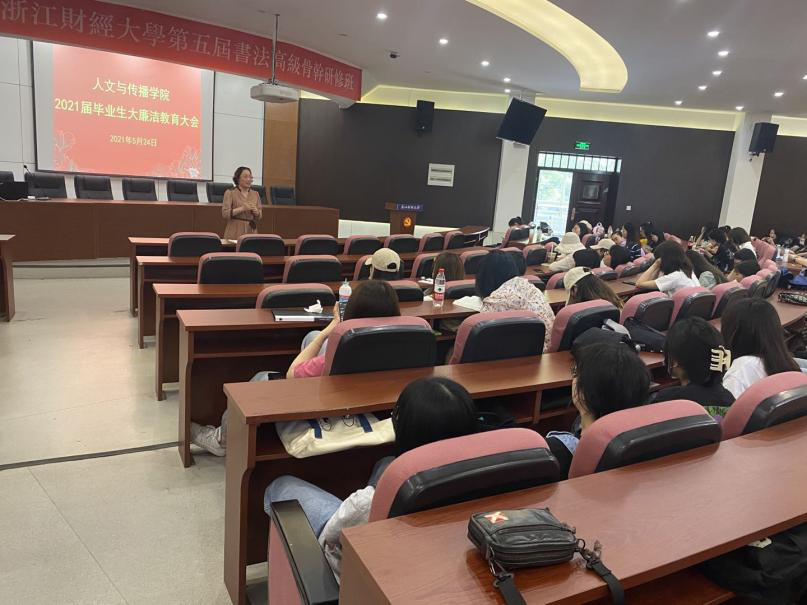 525日下午,猫都论坛 2021届毕业生班会暨廉洁从业教育大会在7号楼112报告厅召开。党委副书记袁慧兰、导师代表吴智斌老师、王阿蒙老师及全体2021届毕业生受邀参加。大会由毕业生辅导员任灵洁主持召开。