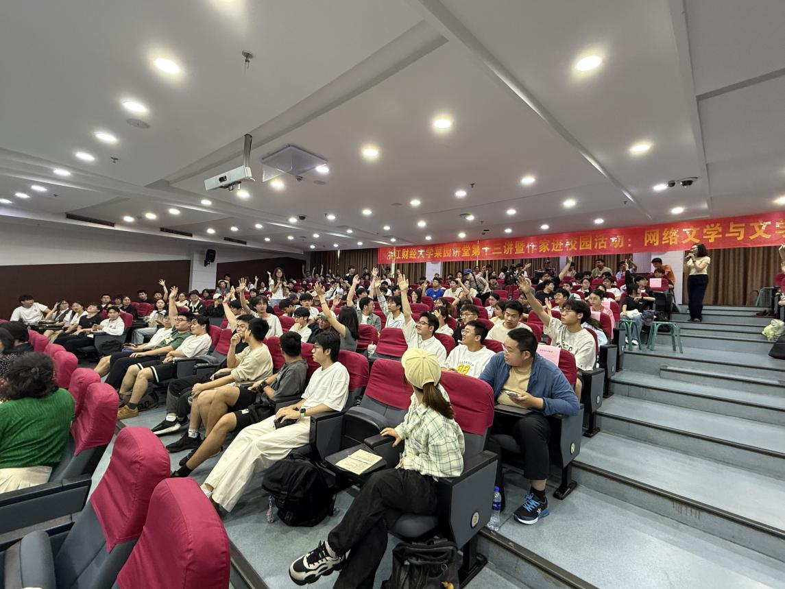 人文与传播学院黄咏梅教授在主持时表示,作为当下“现象级、大神级作家”的烽火戏诸侯已成为无数读者追更与热议的网络文学代表人物,他以其独特的创作风格与丰富的文学积累,为网络文学的深入研究和发展提供了宝贵的个案与视角。学校通过举办菜园讲堂和“作家进校园”等系列活动,在校园内营造文学氛围,以文学之光照亮青春逐梦之路无论时代如何发展,文学依然是滋养心灵的养料,网络文学与传统文学的交流和融合赋予了当代文学更蓬勃的生命力。通过与作家面对面交流,同学们纷纷表示受益匪浅,激发了文学的热情,要把讲座收获转化为创作动力,将以更大热情投入阅读和写作中,在新时代书写自己的青春文学篇章。