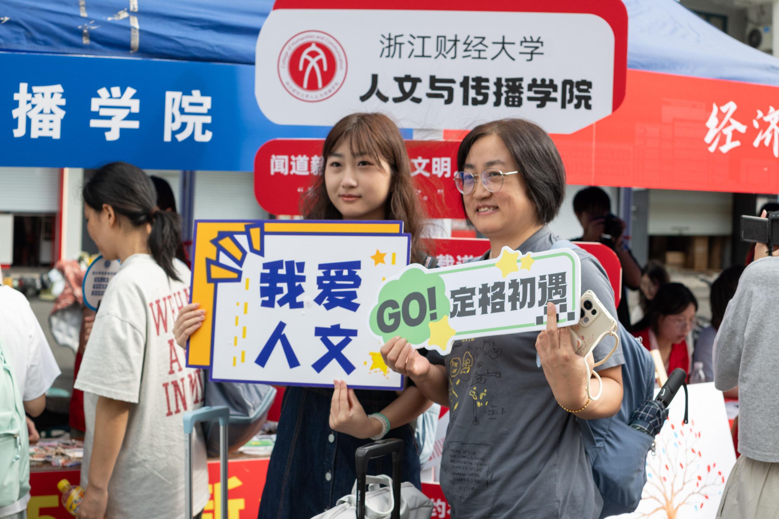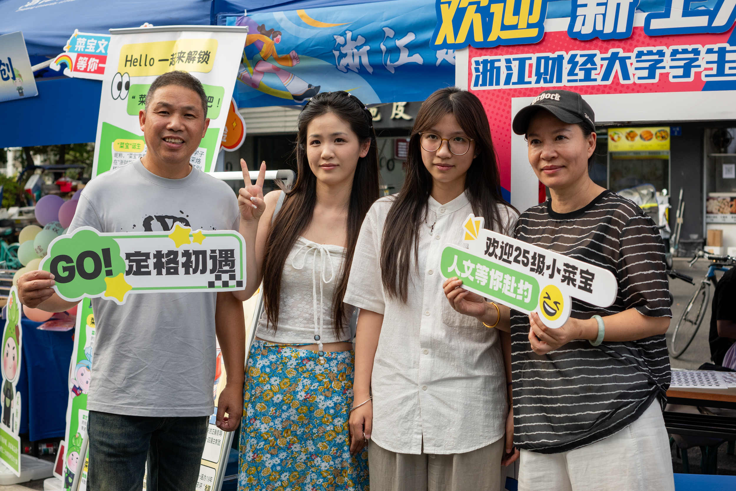 迎新现场,学院为每一位新生定制了文创钥匙扣、明信片,还同步推出 “一站式暖心服务”,由志愿者带领新生与家长逛校园、观看宣传片、聆听专业介绍,现场更设置打卡点定格初遇浙财的影像,助力每一位萌新与家长直观感受学院氛围,对未来的大学学习生活满怀期待。
