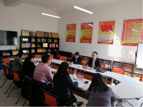在学院楼407党员之家,学院党政领导班子进行了工作汇报。院长周保欣介绍了学院在学科与专业建设、师资队伍建设、科学研究、人才培养等方面的情况,对学院未来“一体两翼”发展思路和和当前存在的难点问题进行了汇报。学院党委书记高燕就学院教职员工情况、支部设置、党建和思政工作品牌建设等方面的问题进行了汇报。党委副书记袁慧兰就学院学生工作情况进行了汇报。