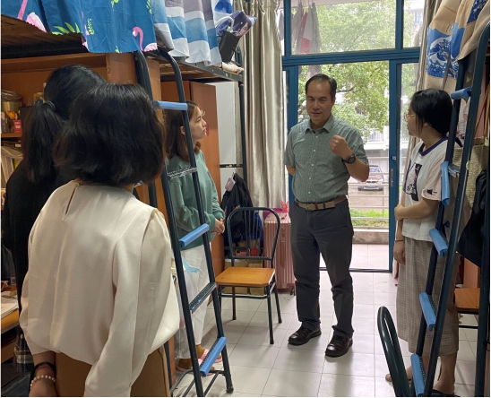 在走访学生公寓的过程中,王奎泉认真听取并解答了同学们在学习生活、升学就业就业方面的困惑,在生活中早睡早起自律自强,多吃食堂少点外卖;在学业上求知善读贵耳重目,脚踏实地进行学习计划,努力成为志存高远,广学深思的新时代青年。并嘱咐同学们疫情期间出行注意安全,有需要及时向学校老师寻求帮助。