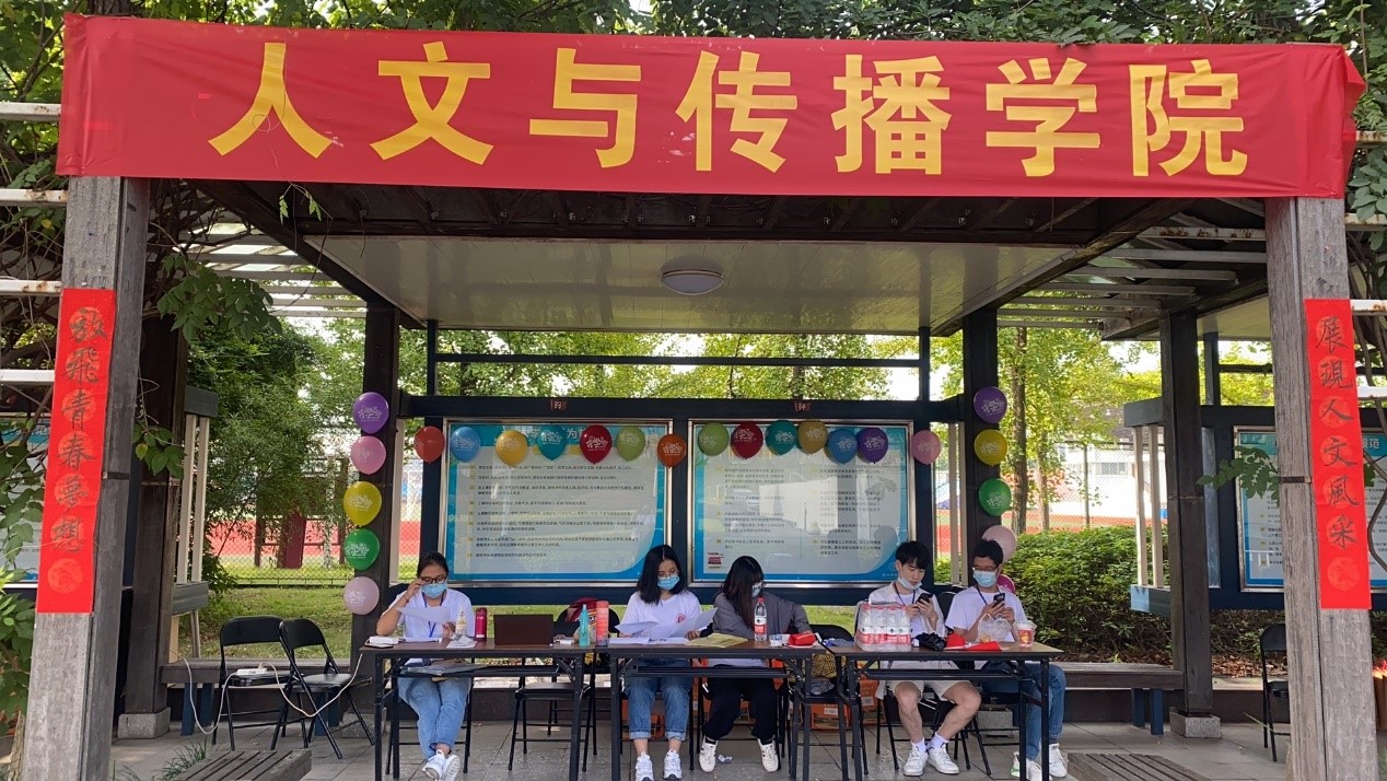 迎新工作,处处彰显着人文精神与关怀:迎新点两侧柱子上张贴着学姐们书写的“放飞青春梦想,展现人文风采”对联;院研会志愿者统一身着自行设计印有院徽logo的T恤;19级学长任劳任怨帮助近20名学妹搬运行李;20级新生张文强同学刚把行李放进宿舍就立马到报到点报名做志愿者。等等这些都让20级新生感受到了人文大家庭的温暖和团结协作,相信人文精神会一届一届延续下去。