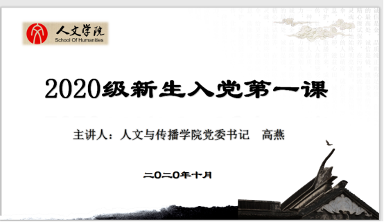 于10月19日下午在学术第一报告厅开展2020级新生入党第一课活动。猫都论坛