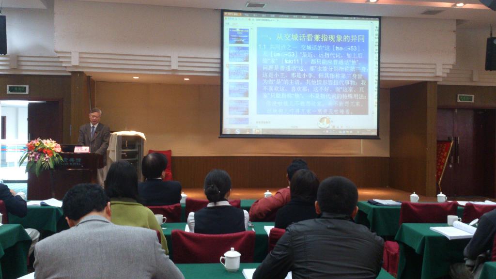 汪化云教授应邀在大会上做了题为《近指和远指代词都兼指第三身现象浅探》的主题演讲,获得了与会学者的热情关注,引发了多次互动。时值汪化云教授60周岁生日,11月3日晚,湖南金鹰影视文化城圣爵菲斯大酒店有关负责人送上了生日蛋糕和寿面,和来自世界各地的学者一起唱响了《祝你生日快乐》,为此次学术之旅画上了一个感叹号。硕士研究生吕洁丽也参加了本次大会,并在小组宣读了论文《越谚中的农耕文化浅谈》。