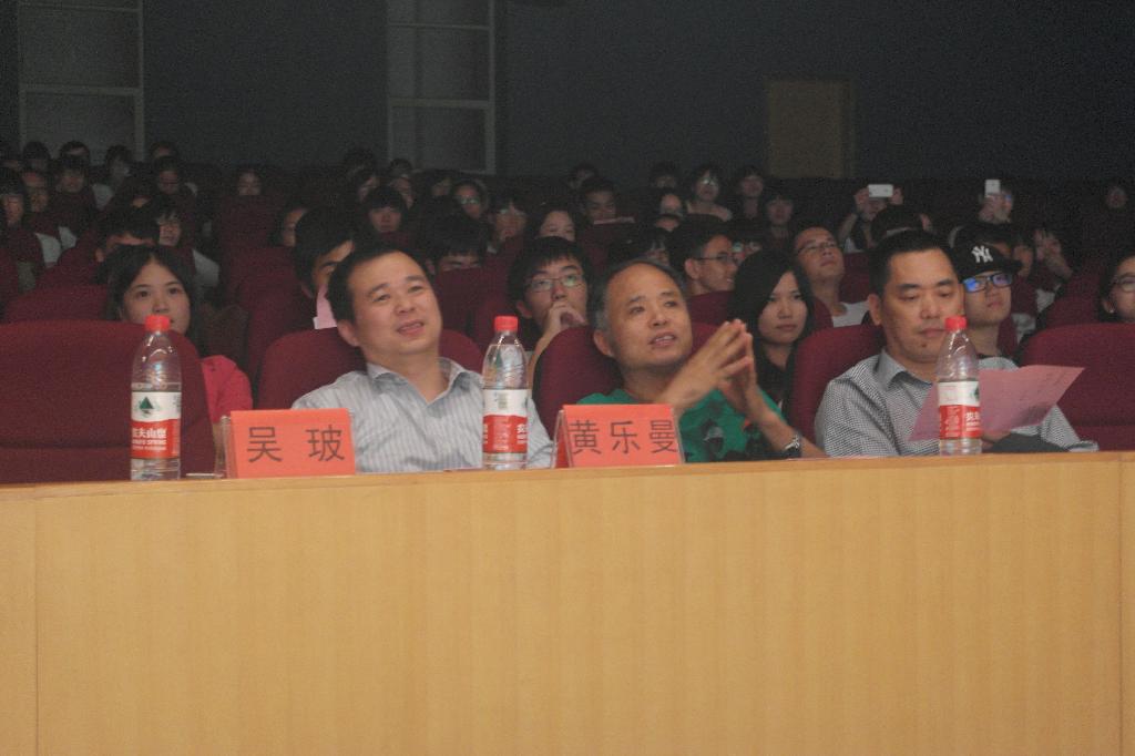 院长何华珍、党总支主持工作副书记高燕、副院长姚红、副书记吴玻、院长助理杨建忠等学院领导、各系系主任、老教授代表和各专业老师代表以及2013级全体新生参加了晚会。