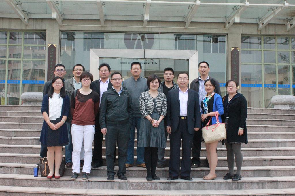 数字媒体专业的办学经验。整个交流过程气氛活跃,一个多小时的时间意犹未尽。通过这次学习考察,双方增进了彼此的了解,充分感受到同行交流的必要性。最后大家在学涯湖边合影道别,此时学涯湖正一派忙碌的场景,正在布置当天下午古典诗词鉴赏诗会的现场。