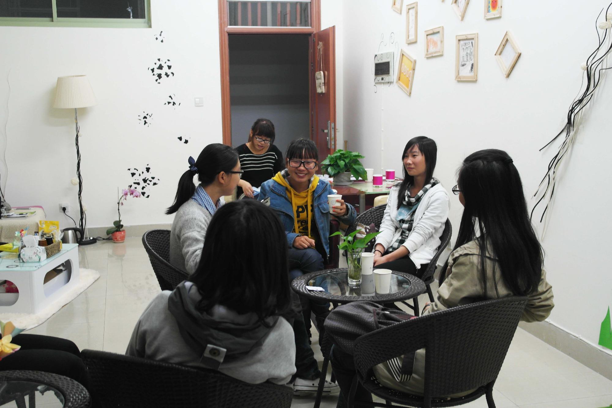在周一晚上6时30分,推门走进“心理小栈”,淡淡的茶香弥漫在空气中,小栈的会员们笑脸相迎,引导我们入座,帮我们泡着一杯杯花茶。参加饮茶故事会的同学一个个陆续进来,有负责接待填写签到表的会员,有倒水泡茶的人,有的人安静地坐在椅子上,手捧一本书轻轻地念着,仿佛在与作者对话解读自己内心的想法,有的人静静地品着花茶,像在品味心田最深处的那半亩方塘。在这个布置简约温馨的小栈里,轻音乐在耳边萦绕,书读着,茶品着,绿色植物,优雅的兰花增添了一份清新。隔断时间,大家齐聚在小栈里,这不仅放松了同学们的心情,营造了一个温暖和谐的环境,还学到了知识,净化了心灵。
