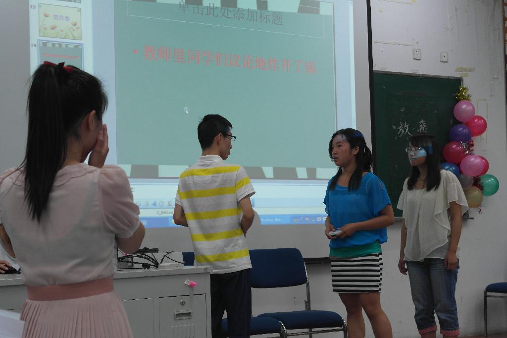 在整个大赛期间, 还有11文学的《陌上转身》等优秀情景剧上演。历时两个小时的比赛在观众们的热烈掌声中圆满落下了帷幕,最终12广告1班的《青春协奏曲》获得第一名,11广告2班及11数媒的剧目获得第二名,11文学,12文学和12对外的情景剧获得了第三名。