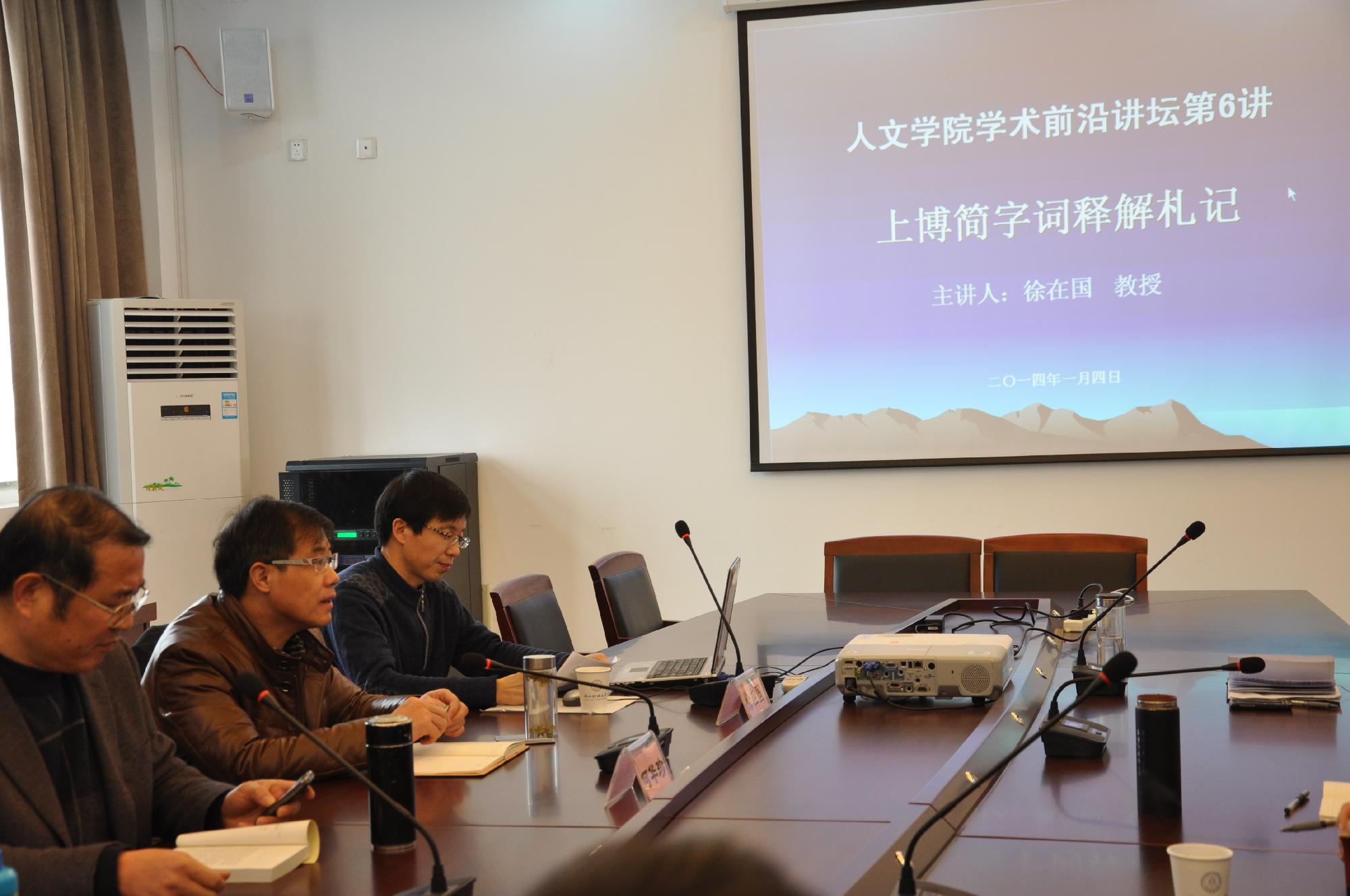 2014年1月4日上午,安徽大学中文系教授、安徽大学“文字学与古文字学”学术创新团队带头人徐在国教授,莅临猫都论坛 讲学,本次讲学主题为“上博简字词释解札记”。