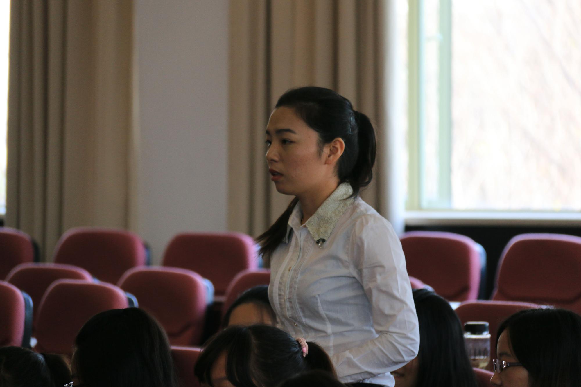 招聘会共分为两个部分,第一部分由两家单位分别介绍公司情况,第二部分为面试阶段。瑜得坊国际教育中心教学主管张晓首先介绍了瑜得坊的公司情况,目前瑜得坊已经在我校文华校区设立了一个教学点,自夏天开始招生,现已有100多名留学生。接下来,上海早安汉语杨凤华介绍了公司情况,她提到早安汉语有多个职位在向外开放,并鼓励同学们多去应聘。两家单位均以开展针对外汉语教学为主要工作内容,共提供10-15个与对外汉语教学相关的岗位。在两位嘉宾介绍完各自公司的情况后,副书记吴玻老师做了动员讲话,首先他向两家单位对猫都论坛