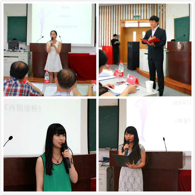 本次比赛由中华经典诗文朗读和备稿演讲两部分组成。在朗诵比赛过程中,各个参赛选手表现出不同的风格,或柔情,或激昂,将比赛推向一个又一个的高潮。而《再别康桥》、《少年中国说》等多次受到选手的亲睐,一次次地在选手富有感情的朗诵中展现了它们的风采。在第二个演讲环节中,选手们选择的题目则更加地贴近生活,贴近社会,他们发表了自己的看法和观点,并用切身体会晓之以理,动之以情,使观众更好地体会到他们的想法,因此获得了热烈掌声。