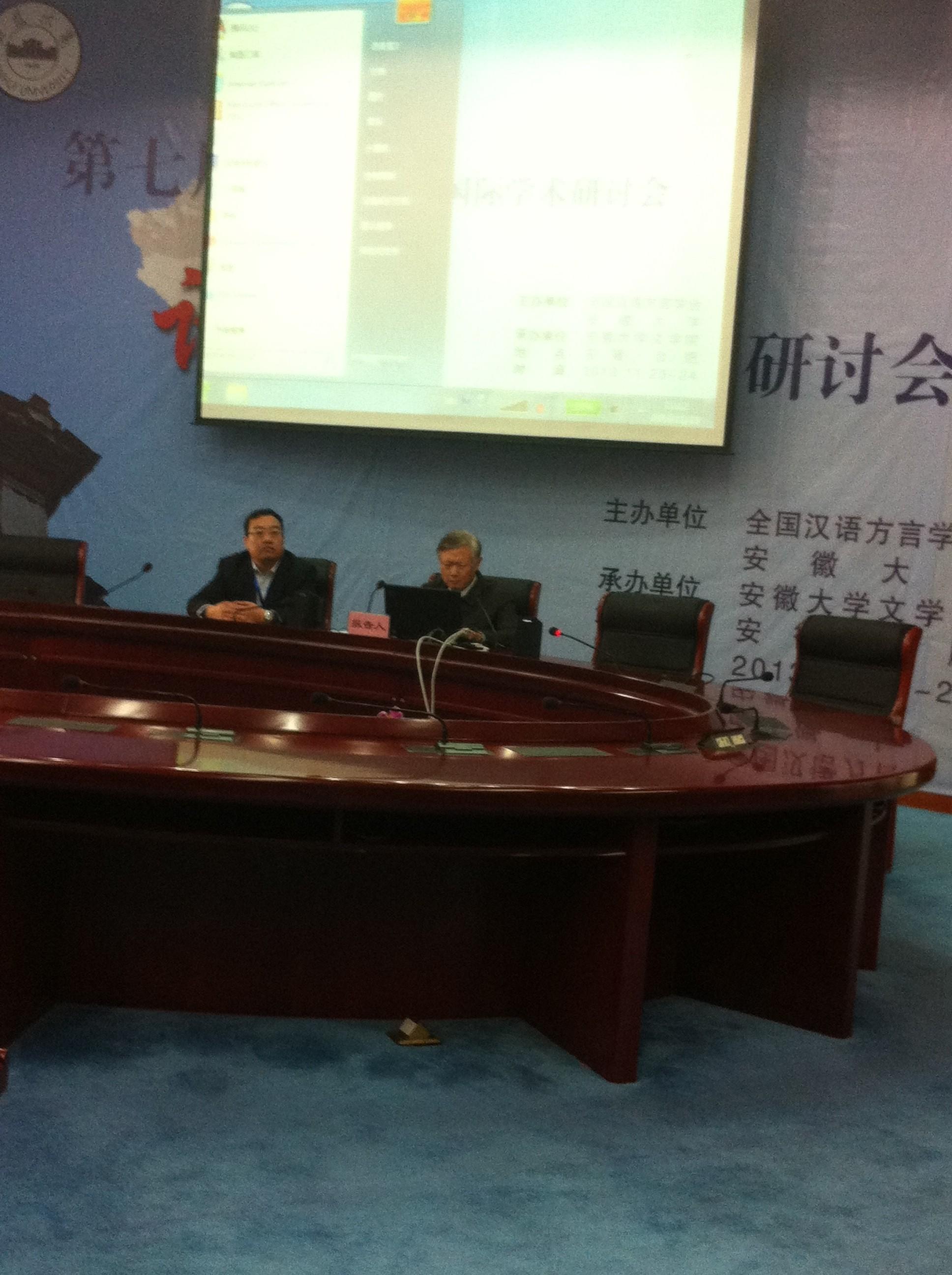 由全国汉语方言学会、安徽大学主办的第七届官话方言国际学术研讨会,于2013年11月22日到24日在安徽大学举行,来自中国、日本、法国等国家和地区的近70名学者出席了这次学术盛会,著名语言文字学家、安徽大学校党委书记黄德宽教授与会致欢迎辞。在简短的开幕式后,与会代表分大会报告、小组讨论等方式进行了学术交流。