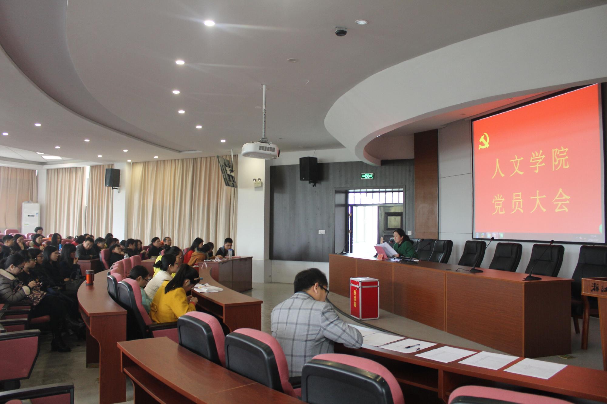 在学院楼报告厅召开了全体党员大会,选举中共浙江财经大学第一次代表大会代表。学院全体教工和学生党员参加了会议,本次大会由院党总支副书记高燕主持。