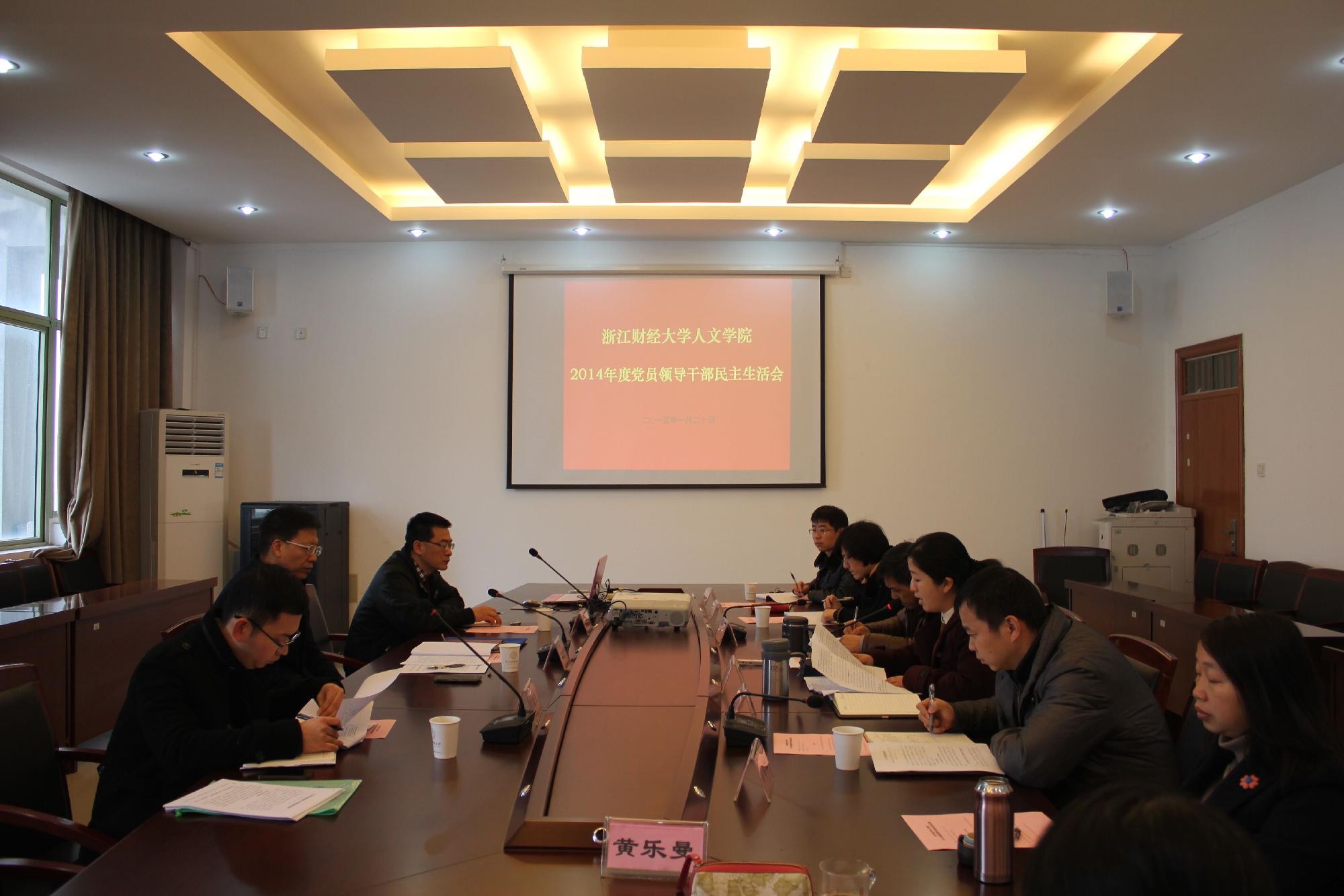 2014年度党员领导干部民主生活会在学院楼404召开,校党委书记、第一督导组组长陈根芳、校办主任徐晓东等全程参加并指导会议。学院领导班子参加会议,部分党代表和“双代会”代表列席会议。会议由党总支副书记高燕主持。