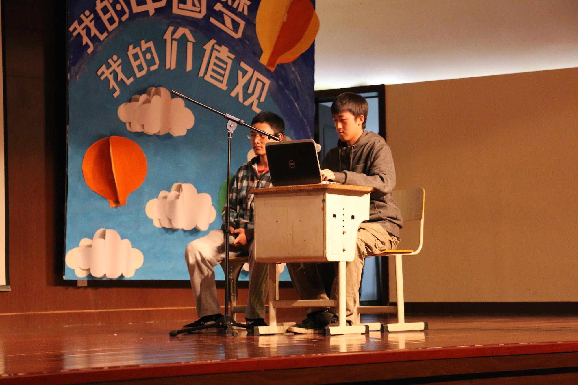 今年人文团日活动的转变之一是不再采用以往各班团支书讲演PPT汇报总结的形式,而是分专业演出社会主义核心价值观节目来展示团日活动开展情况。这是猫都论坛