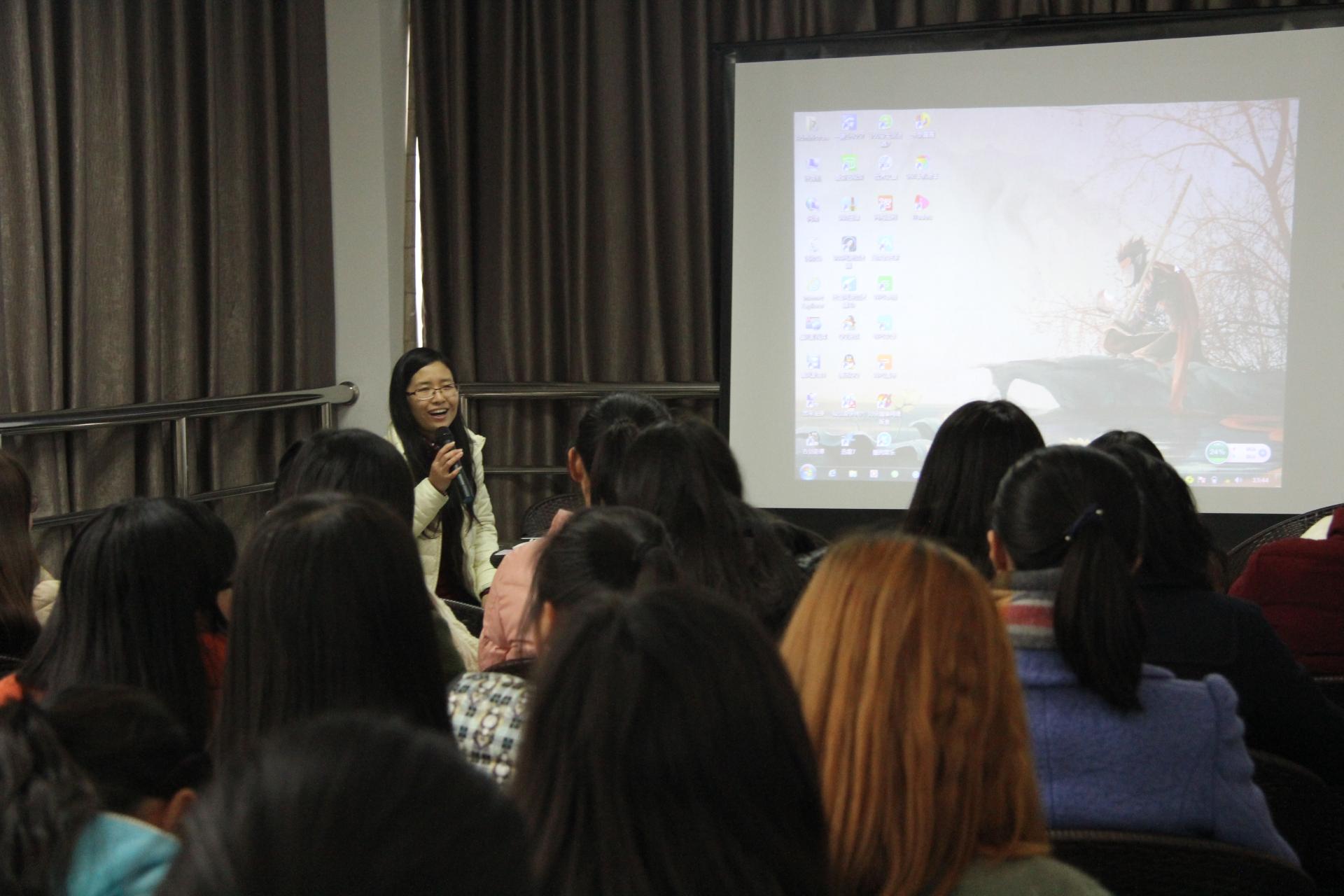 活动伊始,吴玻老师向大家介绍了举办“湖畔人文”沙龙活动的目的、意义,并指出学院今后还会选取不同主题持续推出,成为一个品牌,希望同学们积极参加,通过活动扩充自己的知识面,提高自身的人文素养。崔老师则先向同学们分发了事先整理的诗歌资料,通过播放名曲音乐、自己开嗓而唱等形式,从文学与诗词、诗歌和音乐的小话题引出,带领同学们回顾了中国诗词与音乐结缘的历程,介绍了游走在文学和音乐之间的文人,阐述了中国古诗词和流行音乐的关系。她谈古论今,列举典故,介绍和“诗”“歌”有关的孔子、屈原、李白、王维、苏轼、柳永等名家之事,深深吸引了同学们,使大家感受颇深。她还向同学们推荐了几本书籍,希望同学们不断积累,提高文学修养,将文学和音乐更好融合,让古代诗词与音律更好地相融。袁慧兰老师针对崔老师所讲内容谈了自己感受,展望了同学们的专业前景,使同学们倍受鼓舞。