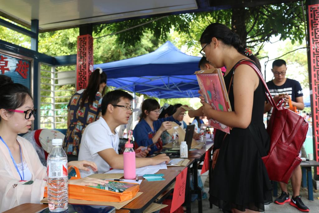 在迎新活动中,每一个部分都充满了人文气息。学院将汉服、剪纸、书法等体现中国传统文化元素的内容融入到迎新工作中,使新生一入校就受到中国传统文化的熏陶。新生接待处的横幅以及柱子上的雕栏,都是由手工剪裁出来的,每一个切口都是志愿者们汗水的结晶。班导们身着汉服,向新生们展现着民族文化的精华。现场志愿者们还准备了书法和纸上篆刻表演,他们将作品赠送给各位家长和新生们,赢得了学生与家长的喜爱,受到了领导们的赞赏。迎新活动每一个部分都让新生们感受到了中国传统文化的魅力,同时也让他们体会了猫都论坛