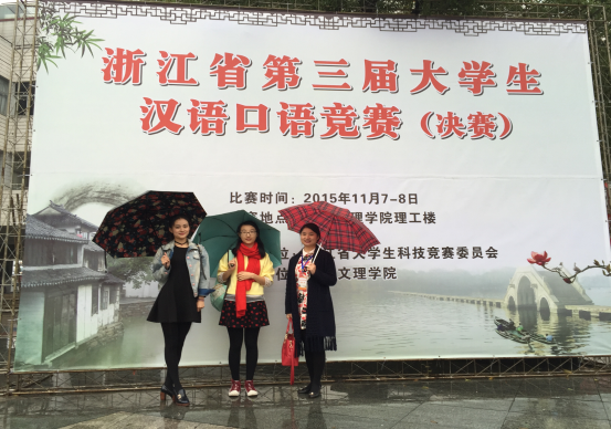 王怀榕老师带队的我校选手,参加了在绍兴文理学院举办的浙江省第三届大学生汉语口语竞赛,取得了可喜的成绩。来自会计学院的徐清怡、高雪莹、张振宇分别获得学生本科组一等奖、二等奖、三等奖,法学院的童韬羽获得学生本科组三等奖;浙江财经大学获得本次比赛优秀组织奖,王怀榕老师获得优秀指导教师奖,这是我校参加此项赛事以来的最好成绩。