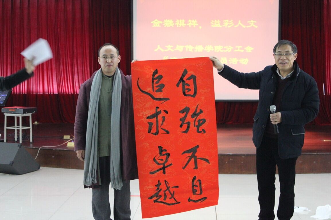 活动节目形式丰富,异彩纷呈。在崔霞老师的《美人吟》中,周寒筠老师现场挥毫,为学院送上了新年的美好祝福。随后的全体教职工情歌大对唱、男声五重唱、女声独唱、交谊舞表演,以及穿插于节目间隙的趣味游戏,将活动气氛推向高潮,老师们热情参与,现场一片欢声笑语,热闹非凡。