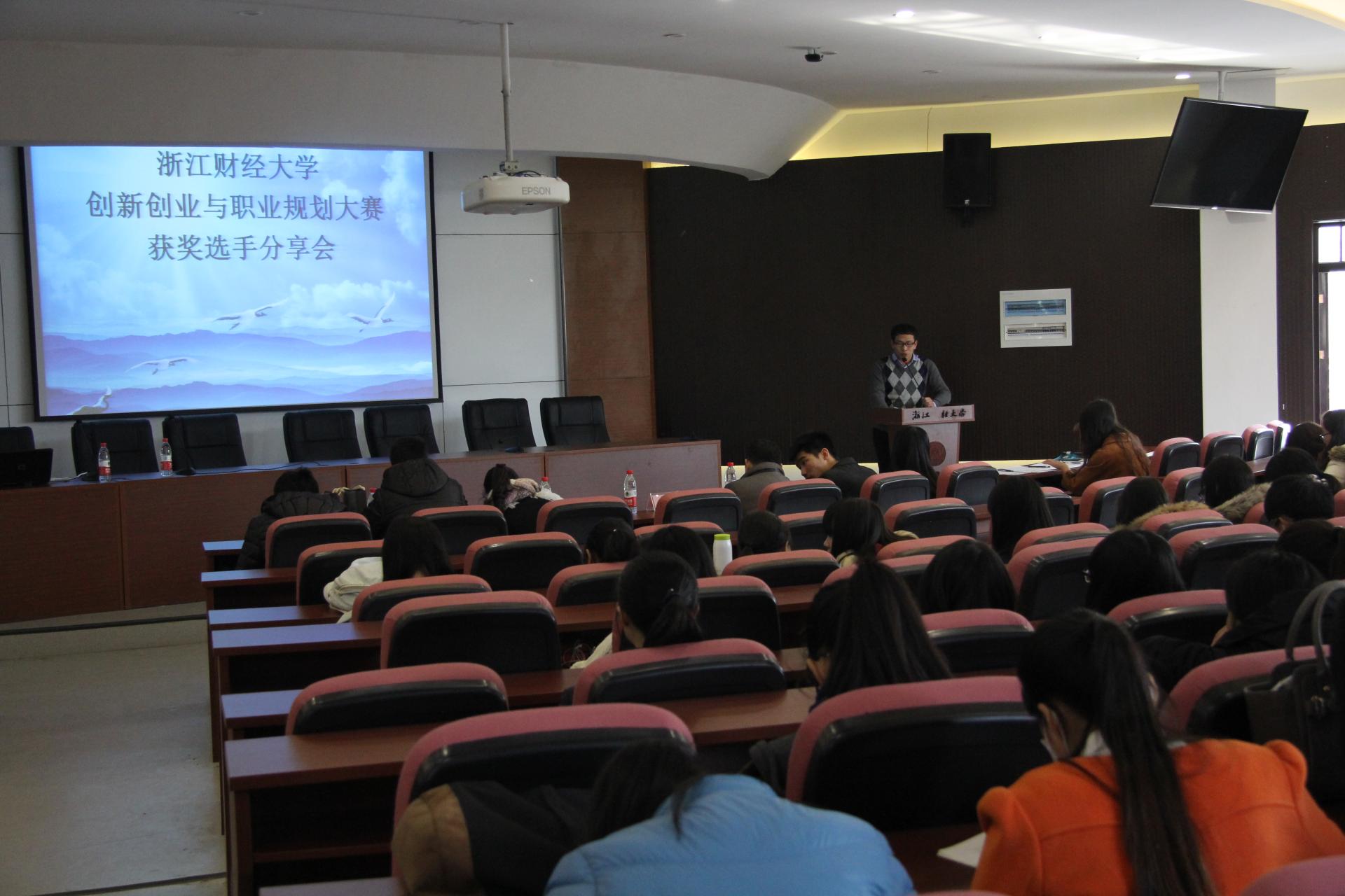 12月8日下午在7号楼112教室针对创新创业感兴趣的学生举行了浙江财经大学创新创业与职业规划大赛获奖选手分享会,本次活动邀请了“云书”、“菁恪校园”、“游集市”等获奖队。通过活动,旨在浓郁学院创新创业氛围,培养学生创新创业意识。