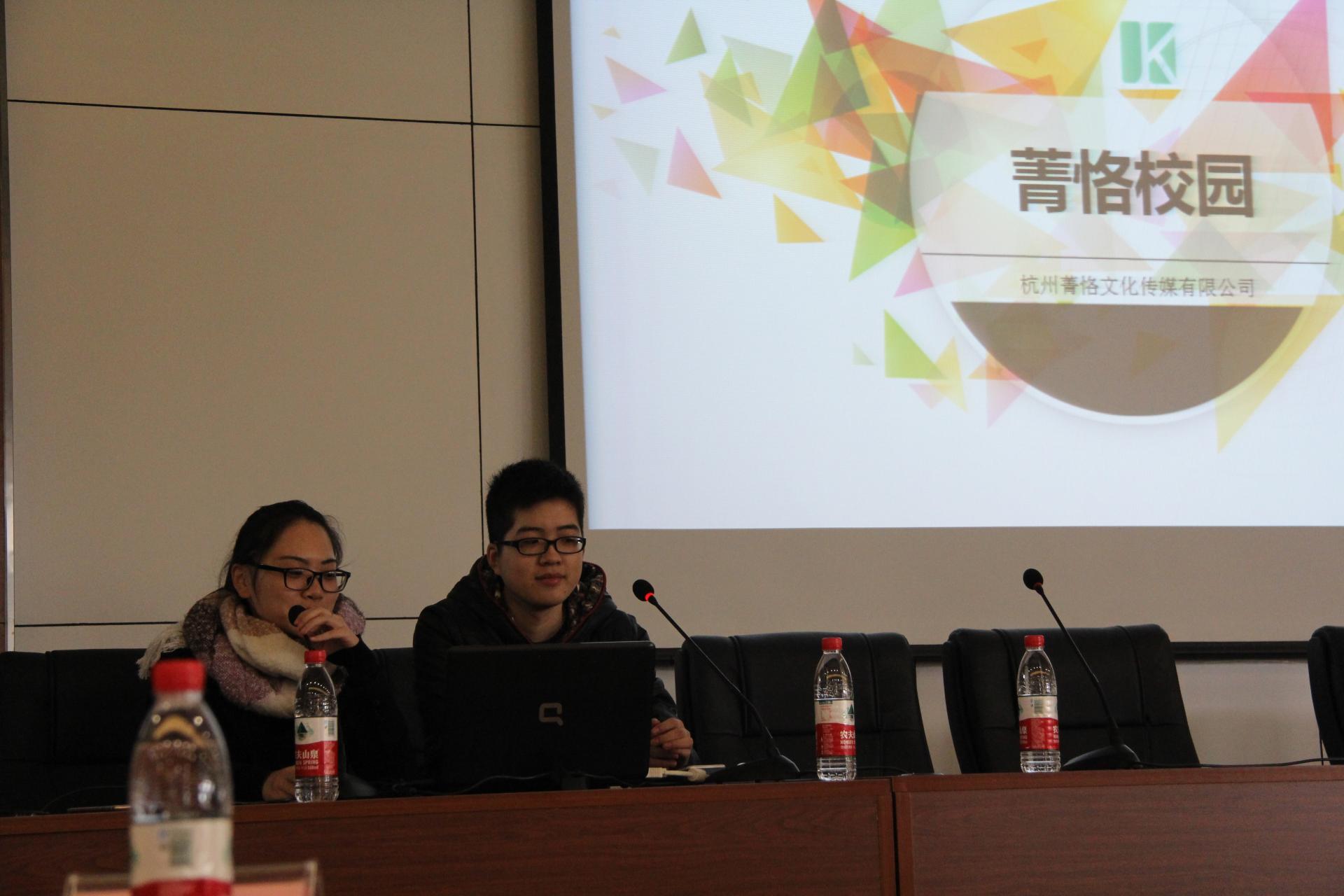 会上,“云书”团队向同学们分享了项目概况、创业心得和体会,告诉同学们创业不仅仅是一个不断学习和实现个人价值的过程,而且还是实现社会价值的过程。“菁恪校园”分享自己团队创业的组建和发展过程。“游集市”团队分享了作为一个旅游微平台,讲述了大学生创业过程中遇到的难题,以及解决的方法。接着,三个团队与猫都论坛