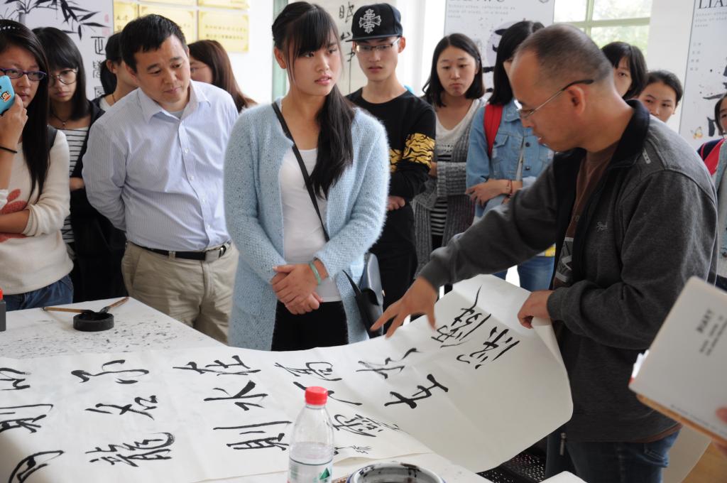 沙龙中,周寒筠老师首先谈到书法是中华优秀传统文化的重要组成部分,在古代,它兼具书信、应试的现实功用和修身养性的艺术价值,对于当今,虽然书法从实用领域渐渐退出,但在专业艺术领域的地位却不断上升,书法的教化和愉悦作用越来越得到彰显。接着,他提到书法能陶冶性情,能引起人们对自身以及对世界的反省和深思。自宋代始,书法家便开始大量书写名家的文辞,而这些文辞大多富有哲理性,人们书写它的同时,也受到其内在意蕴的熏陶,从而使书法在欣赏与流通的过程中让他人体会到妙趣,即达到“愉己悦人”之效。最后,在互动环节,气氛热烈,同学们纷纷参与书写,周老师不但亲自示范书写,还给予同学们指导,来参加活动的师生均表示受益匪浅。