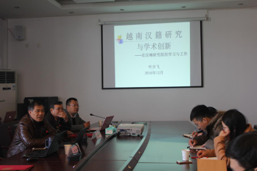 之后,丁克顺教授做了题为“越南汉喃碑文研究”的讲座,在展示丰富汉喃碑铭材料的基础上,介绍了越南汉喃碑文的研究现状及未来的研究空间。叶少飞研究员结合自己在汉喃研究院的求学经历,做了题为“越南汉籍研究与学术创新”的讲座,激起了在座师生对越南汉籍研究的强烈兴趣。