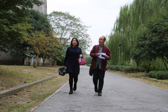 11月7日中午,大家在学涯湖畔留下美丽的个人照后,沿校友路徒步走,带着轻松愉快的心情,大家时而望望远处的山坡,时而看看路边花草树木,三三两两徐徐前行,一路欢歌笑语,向着终点前进。