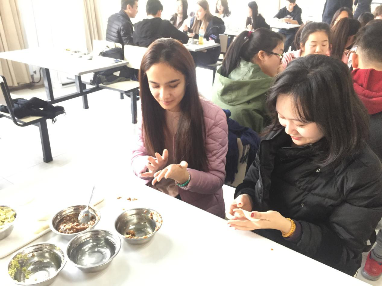 主题班会恰逢冬至前夕,在中国民间就有“冬至大如年,饺子不等闲”的说法,这次班会便别出心裁地采用包饺子、吃饺子的活动形式,让留学生们感受到中国传统民俗,品味中华传统美食。