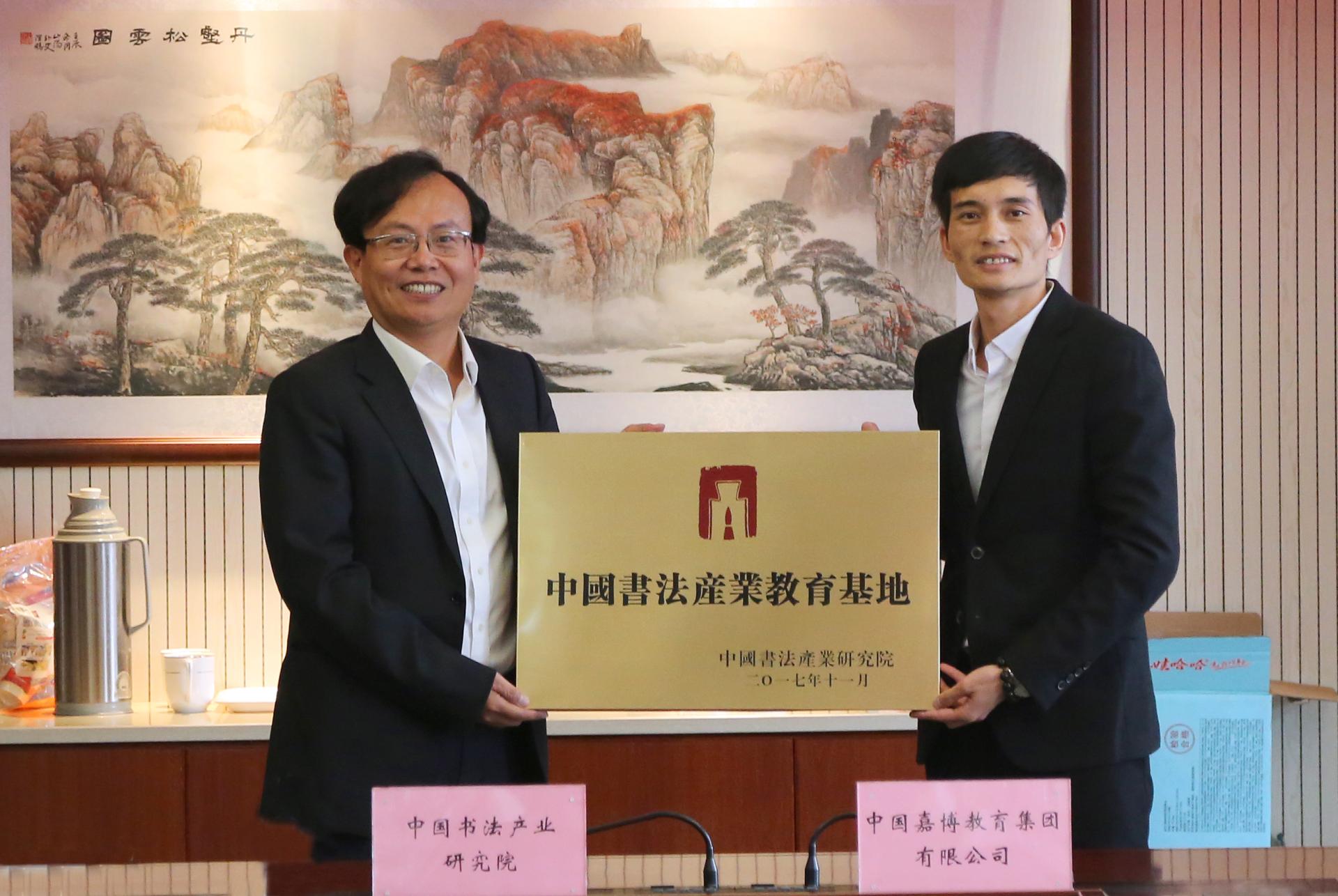 签约仪式结束后,副校长、研究院院长黄建新向嘉博教育集团授予“中国书法产业教育基地”称号,华桃总经理代表集团接受牌匾。