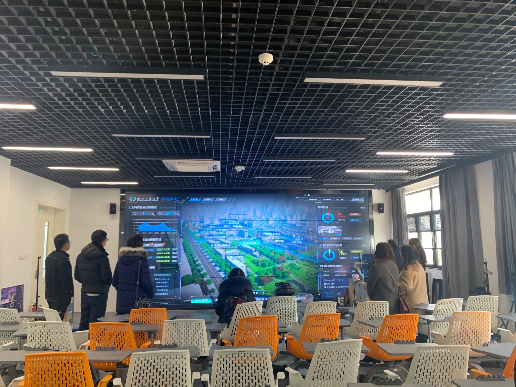 教师首先参观了“浙江工商大学国家级文科综合实验教学示范中心”和“融媒体演播室”,文科实验中心主管陈缘和宣传部网信办主管傅鸿州进行了细致讲解。双方同意在新文科背景下,实验室在教学过程中应承担更为重要的角色。体验了新实验室的先进设施,大家同时交流了高校实验室建设的申报、采购、立项经验。