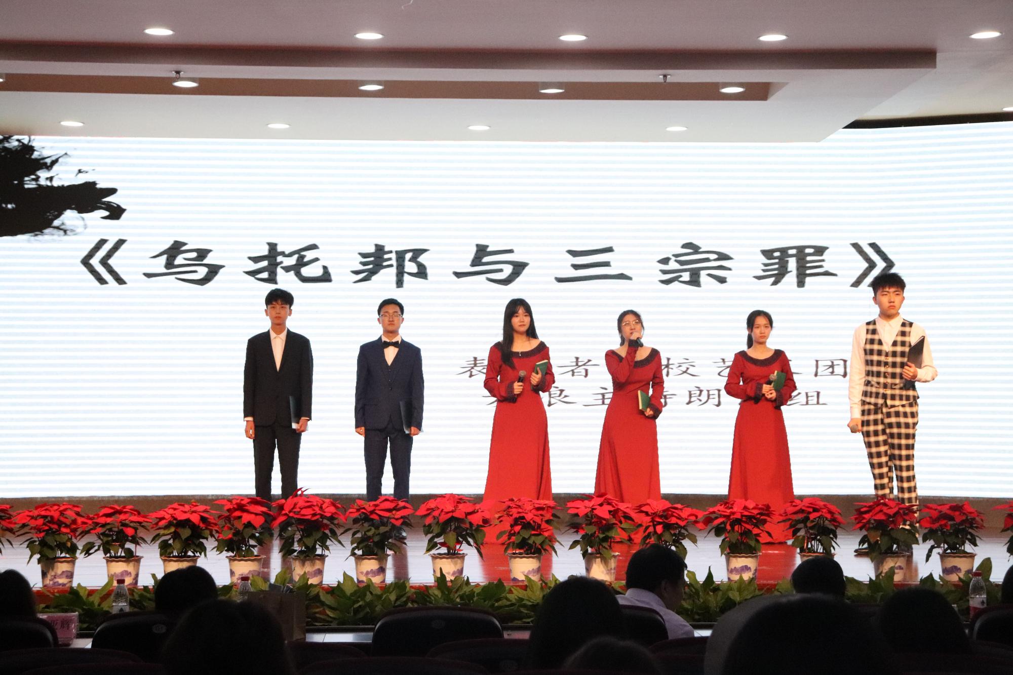本次闭幕式内容丰富,形式新颖。仪赏社汉服走秀,开场尽显中华传统服饰之美;学院合唱团的《牵丝戏》,向我们展示了古典声乐的魅力;《春天,遂想起》诵读中华经典,金声玉振;浙江民歌《采茶舞曲》,让我们领略了赏心悦目的艺术瑰宝;《乌托邦与三宗罪》集体朗诵,扣人心弦,字字珠玑。