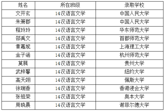 近年来,汉语言文学专业考研、出国率屡创新高,以2018届汉语言文学专业为例,该专业共有毕业生35人,考研出国人数达到12人,升学率达到34.2%。