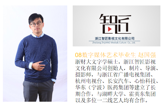 09数媒毕业生汤凯文,2013年起进行影视行业创业,现为嘉兴知白影像股东合伙人;北京24frames与广州goldenlove学员,awpa亚洲婚礼摄影师协会会员,擅长情感纪实与时尚酷炫的双重拍摄手法。
