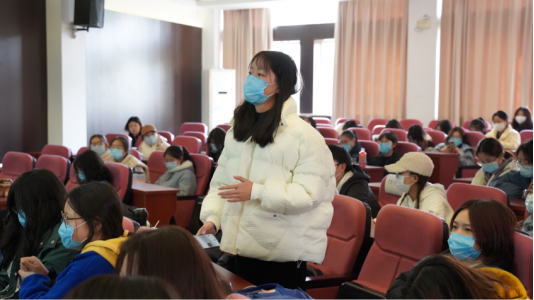 在交流互动环节,同学们踊跃提问,金老师就同学们关心的就业技能培养、知识储备等问题做了专业细致的回答,并鼓励同学们:“融媒体时代,电视新闻的发展还需要注入更多新鲜血液,同学们要在大学期间加紧能力培养,未来的发展需要并依靠你们!”精彩的讲座获得了同学们的热烈掌声。