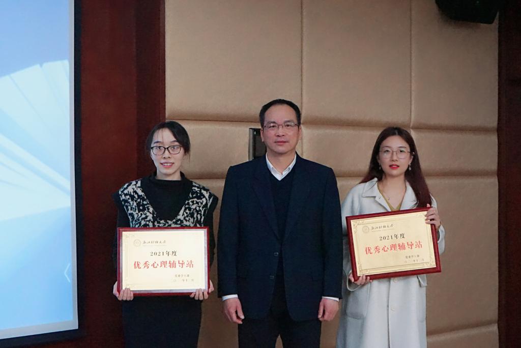 学办主任、心理辅导员任灵洁从“用心”—完备的保障机制、“用情”—全面的预防体系,“用智”—特色的文教实践三方面,详细汇报了这一年具有“文化育人”“朋辈互助”特色的心理健康教育工作,最终以总分第一的成绩获得了2021年度校优秀心理辅导站的称号。