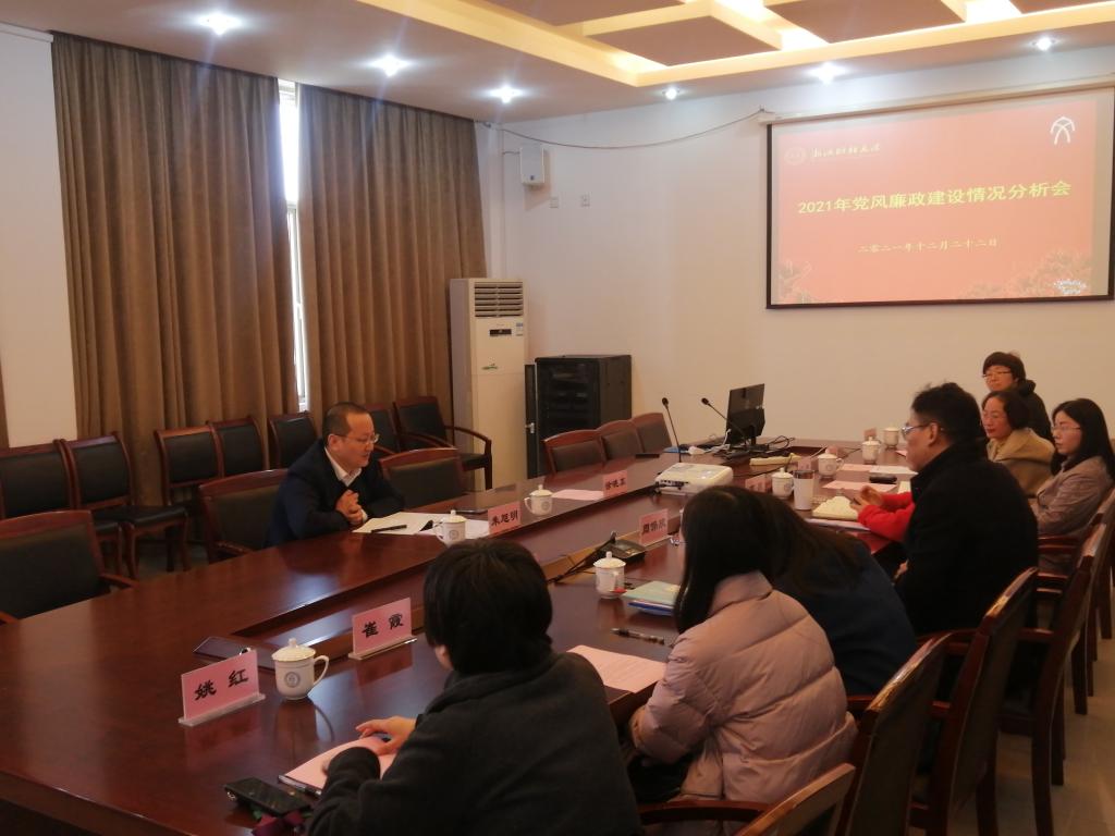 党委召开2021年度党风廉政建设分析会。校纪委委员、机关党委专职副书记朱旭明到会指导。会议由学院党委书记高燕主持。
