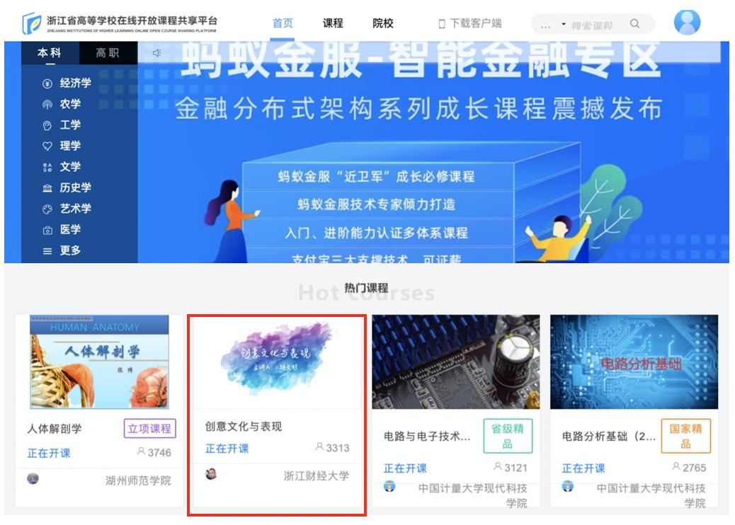 《创意文化与表现》在提升学业挑战度、增加课程难度和拓展课程深度方面取得了积极成效,多次获“省平台”猫都论坛推荐为热门课程,先后被认定为浙江省首批一流本科课程(混合式)和第二批一流本科课程(线上),并于2021年获我校和省教育厅推荐参加第二批国家一流本科课程评选。