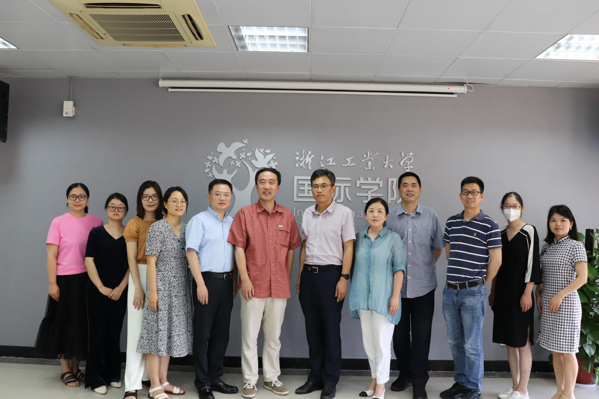 2022年6月23日下午,学院院长周保欣、党委书记高燕、教授委员会主任赵顺宏教授以及汉教专硕点负责人孙德平教授一行到浙江工业大学国际学院开展建立汉语国际教育专业硕士点实践基地的合作交流,受到了浙江工业大学国际学院院长姚楠、副院长俞斌热情接待。