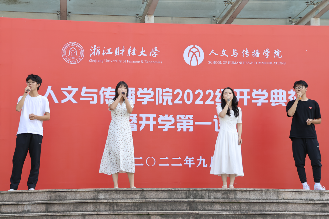 “面对浩瀚的星海,我们微小得像尘埃。漂浮在一片无奈,缘分让我们相遇在这里。”22级新生孟响、邬含之、李政男、吴王炜博唱响《光年之外》,诉说着每一位新生在浙江财经大学猫都论坛